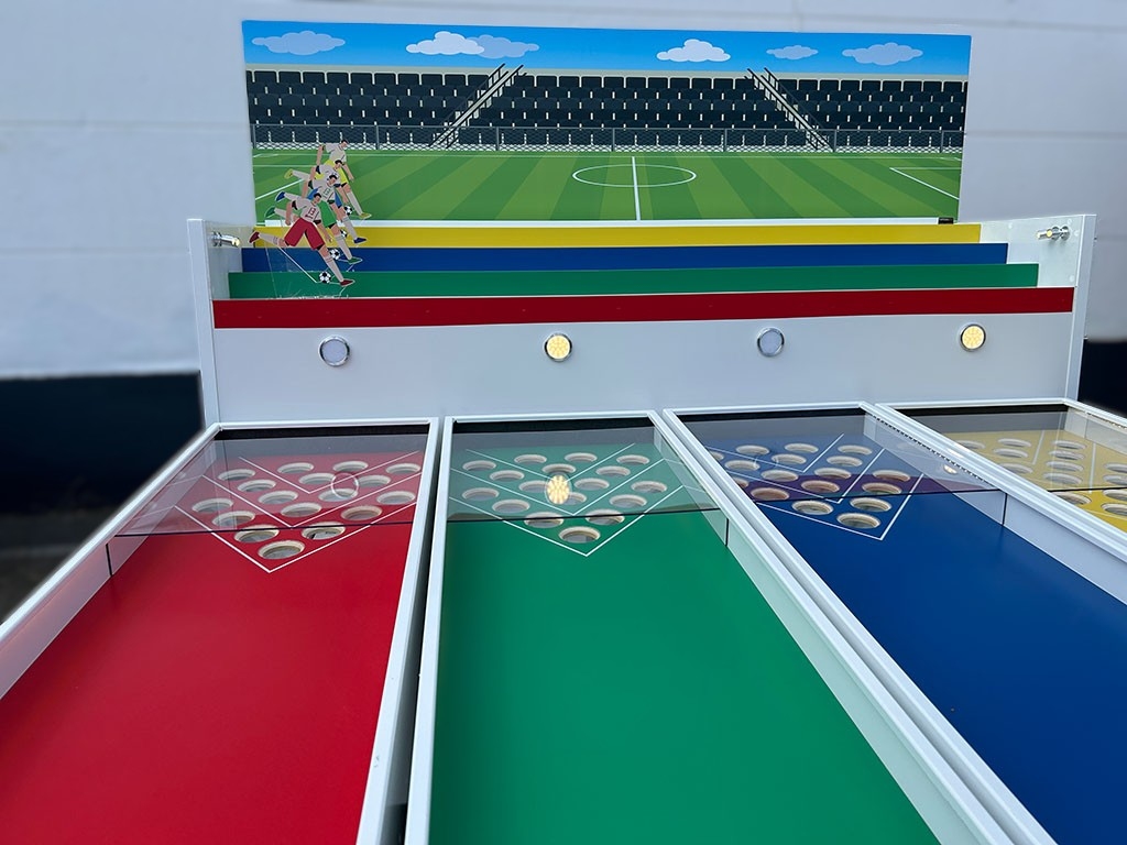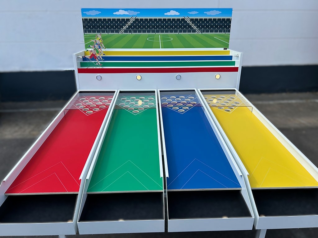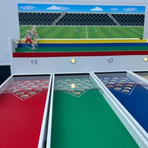 Anpfiff, Anstoß, Action! Das Fußball-Derbyrennen bringt die klassische Jahrmarkt-Atmosphäre direkt auf Ihr Event – kombiniert mit packendem Wettkampffeeling und jeder Menge Spaß. Dieses Eventmodul ist die perfekte Mischung aus Geschicklichkeitsspiel und Unterhaltung und sorgt für Spannung pur.