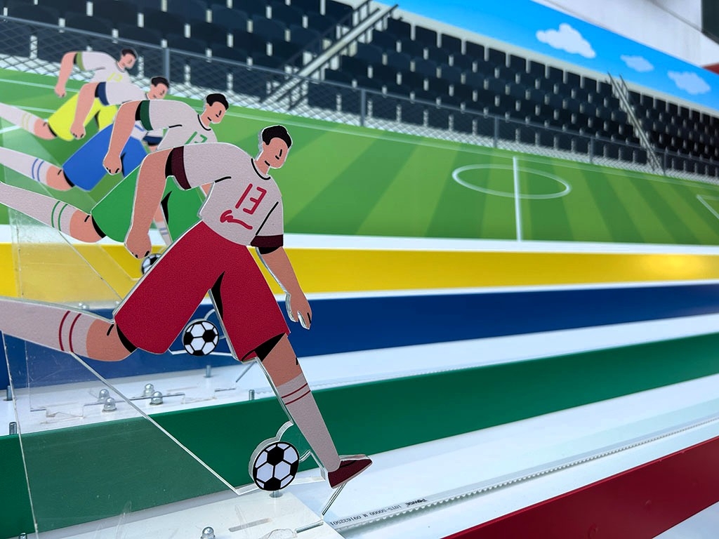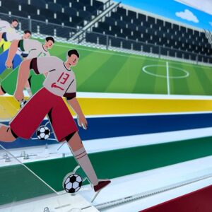 Machen Sie das Eventmodul zu Ihrem maßgeschneiderten Promotion-Tool! Das Kopfschild und die ‚Läufer‘ des Fußball-Derby können individuell mit Ihrem Logo, Slogan oder Ihrer Werbebotschaft gebrandet werden – perfekt für maximale Sichtbarkeit auf Events.