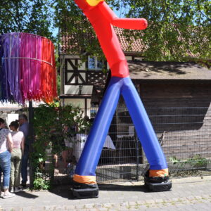 Jeff, der bunte Eye Catcher auf zwei Beinen, ist schon von weitem gut sichtbar. Der tanzenden Sky Guy mit Gesicht und Armen signalisiert, dass bei Ihnen etwas los ist. Mehrere Sky Dancer auf dem Festgelände verteilt oder auch am Eingang positioniert, vermitteln Ihren Gästen lautstark und in luftiger Höhe wo es lang geht.